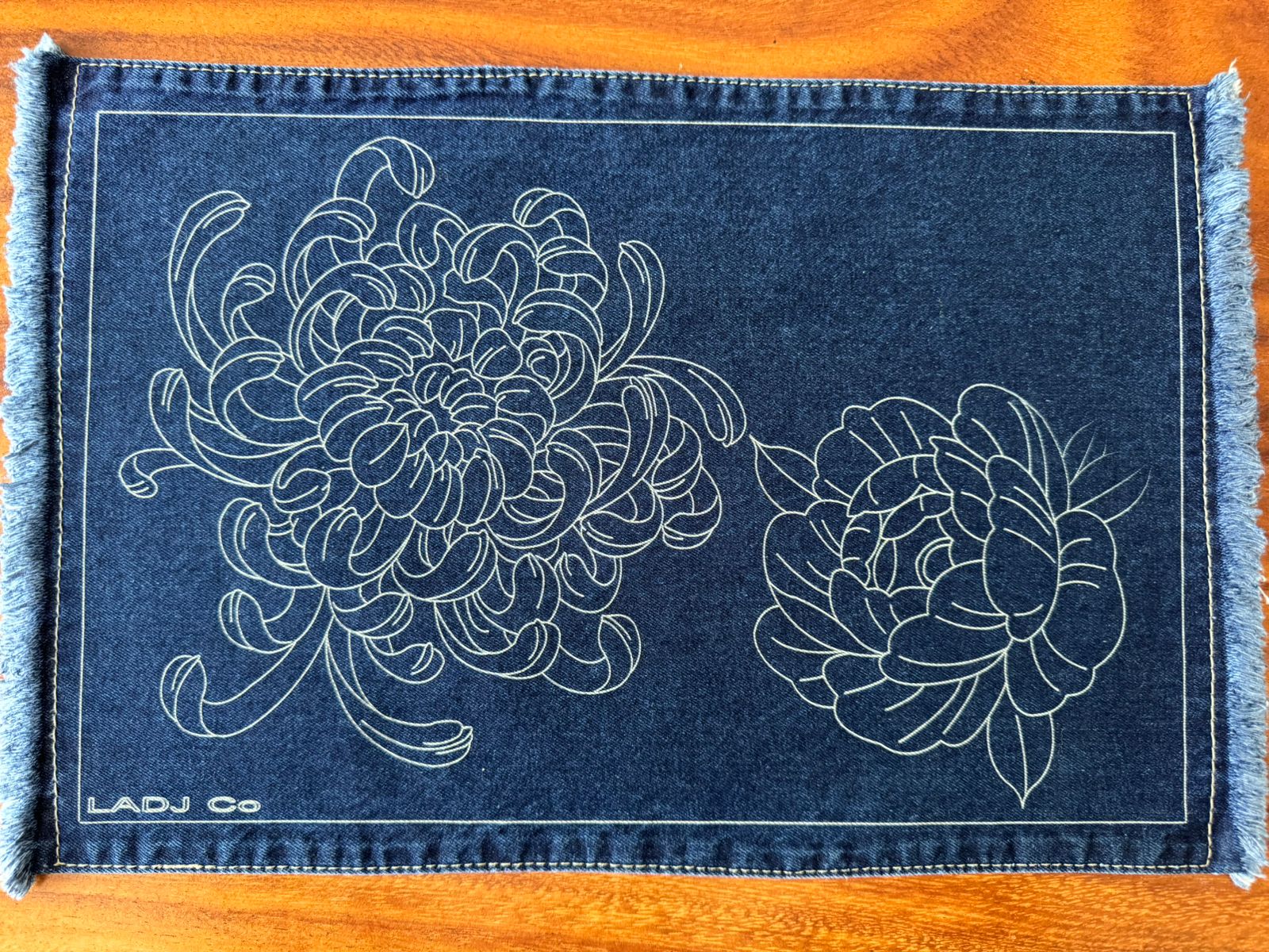 Este elegante mantel combina la resistencia de la mezclilla con la delicadeza del diseño floral. Los crisantemos aportan un toque natural y sofisticado, ideal para embellecer tu mesa con estilo. Perfecto para cenas especiales o para dar un aire acogedor a tu día a día.